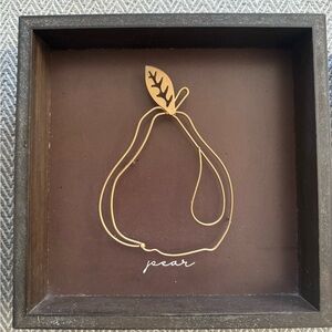 3 Shadowbox Wooden Rustic Frames with copper wired “Apple” “Pear” and “Orange”. Each frame is 8” x 8”.