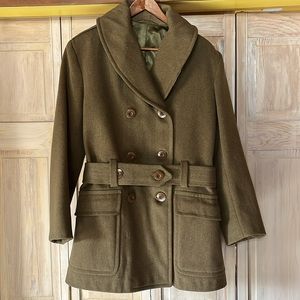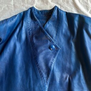 Lee Denim jacket great for layering. A style staple. Zigzag center placket. Branded bronze-tone Lee hardware. Adjustable waist tabs. Hook tab. Cuffs. The jacket is a light blue denim color now. It used to be a darker blue denim color as seen on the inside of the pockets. The inside brown Lee label has washed out. No rips, no stains. In excellent used condition.