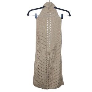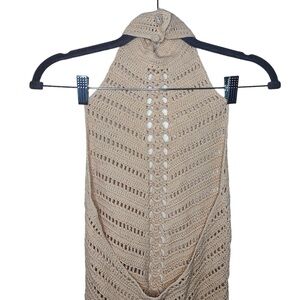 Camila Coelho Women’s XS Lyssa Hand Crochet Halter Mini Boho Dress in Sand