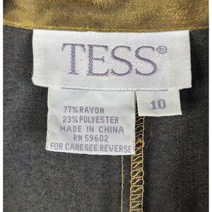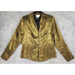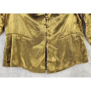 Tess Shirt Womens 10 Gold Metallic Retro Button Up Long Sleeve Blouse Vintage