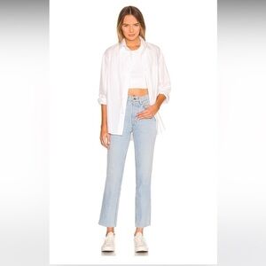 Hi-low hemline on bottom with vented side slits.