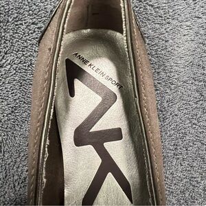Anne Klein Sport Brown & Metallic Toe Cap Buckle Accent Ballet Flat Shoes Size 7.5 These stylish Anne Klein Sport brown ballet flat shoes feature a metallic toe cap and buckle accent to elevate your look. Crafted with a memory foam cushion sock, the comfort of these ballet flats will make them an indispensable part of your professional wardrobe. Plus, the rubber bottom sole provides long-lasting durability and non-skid protection.