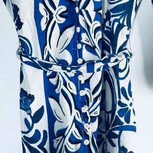 Get ready for summer! Beautiful 3/4 sleeve dress with v-neck, buttons and tie waist.