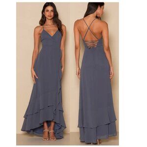 Lulus Poised Preparation Black Asymmetrical Column Maxi Dress Size XS NWOT