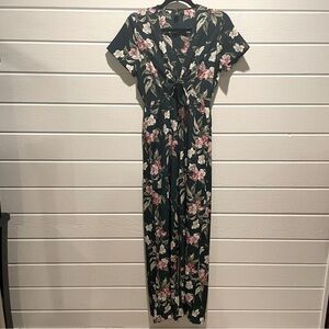 NWOT Volcom Emerald Green Haute Tropic Floral Plunge Jumpsuit Size Small