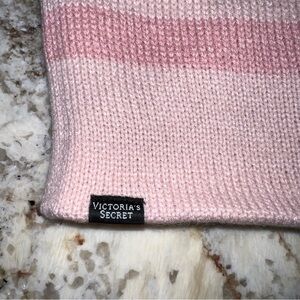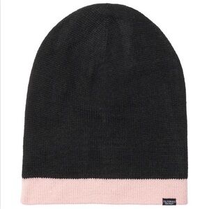 NWT Victoria's Secret Signature Pink and Black Stripe Reversible Beanie