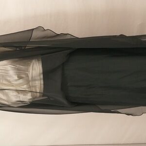Perfect for a costume, has some minor issues on the sheer layer but presents well with those. Good quality, made in USA, label is After dark. Chiffon sheer wide skirt over opaque lining. Size marked 6, shown on an 8 dress form. Waist has elastic at back waistband. Waist 27-30".