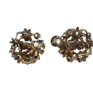 VINTAGE LISNER GOLD TONE GREEN FAUX PEARL SCREW BACK EARRINGS MARKED