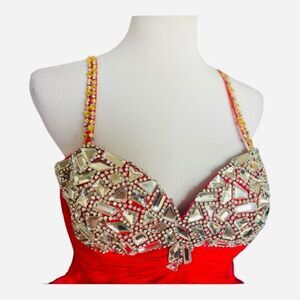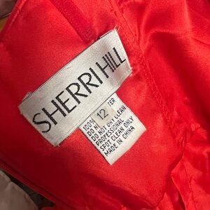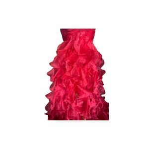 Womens Sherri Hill 2838 Red Organza Ornate Prom Holiday Ball Gown Dress - Size 8