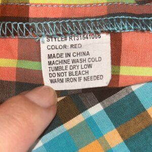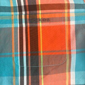 Rockies Orange and Blue Plaid Button-Up Shirt - Size M