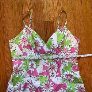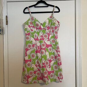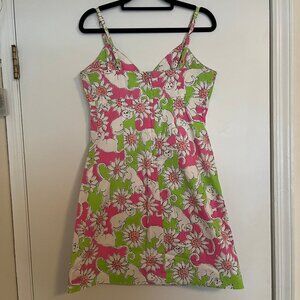 Vintage Lilly Pulitzer Size 8 Lounging White Lions Mini Dress - Pink Green White
