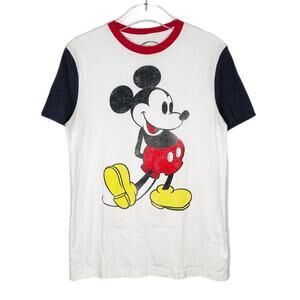 Disney Color Block Short Sleeve Classic Mickey Ringer Tee T-Shirt Small