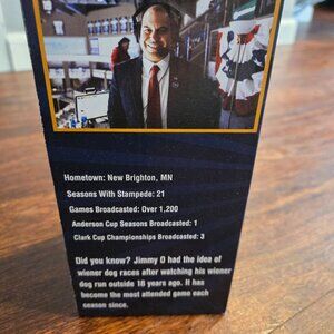 This bobblehead giveaway is of Jimmy Olander, who is not only the team's current broadcaster , but the President and CEO.