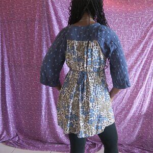 Free People floral deep front pocket v-neck blouse boho in blue, white and olive green size small. Tank underneath is not included