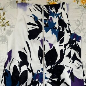 Tahari Blue/Purple/Black/White Patterned Sleeveless Dress