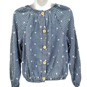 Embroidered polka dots and timeless gingham combine to give this Madewell shirt a charming look. A button-back design adds a unique feel to the silhouette.
