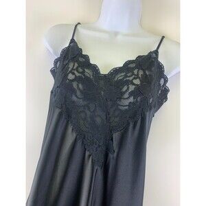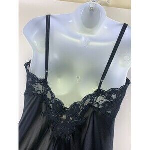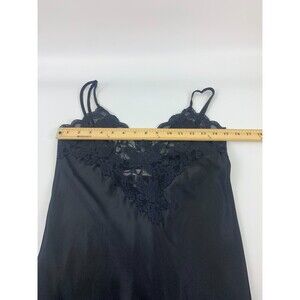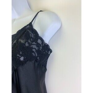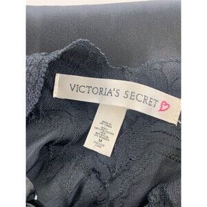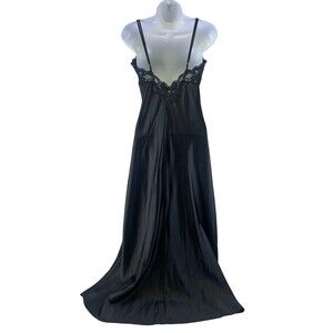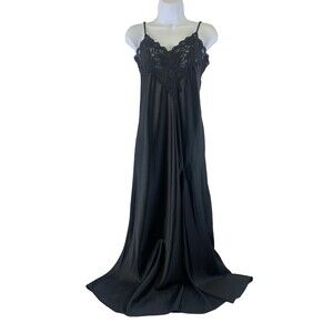 Victorias Secret Long Black Lace Satin Gown High Slit V-Neck Adjustable Medium.
