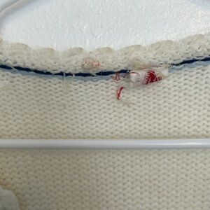 Vintage white sweater. Off white now. No tags besides “40” and “do not dry clean”. Stain on front left side as shown. Size is an estimate. Beautiful detailing. Bought from a vintage store years ago.