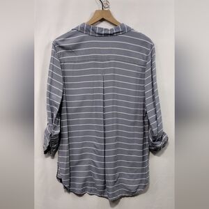 BeachLunchLounge Stripped Button Shirt Womens L Gray Boho Retro 90s Y2K Casual
