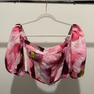 NEW SHOWPO LUCIENNA TOP PUFF SLEEVE CORSET IN ZINNIA BLOOM Size 4