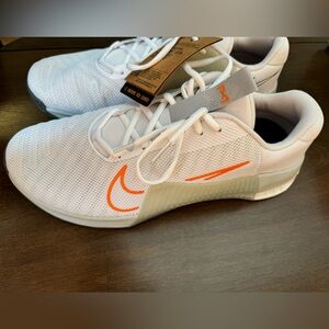NIB (no lid) - Nike Metcon 9 Men’s Size 14. White/Silver/Orange. Please see pictures for details. Shoes pictured are the shoes you will receive.