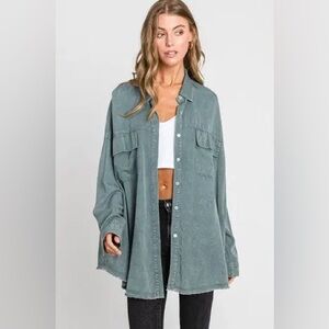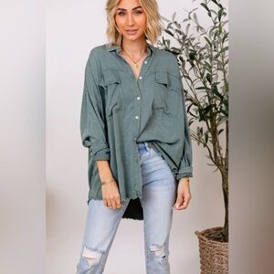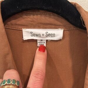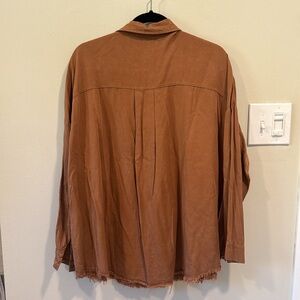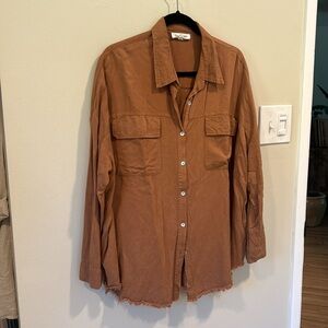 SEWN + SEEN Raw Hem Oversized Button Down Top Light Rust / Camel Brown sz M NWOT