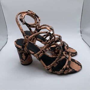 Michael Kors Brenna T Strap Peep Toe Sandal metallic gold High Heels Sz 9.5M E2. Condition is Pre-owned. Shipped with USPS Ground Advantage.