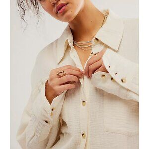 The perfect billowy buttondown from our We The Free collection featured in a gauzy fabrication and relaxed fit with a collared neckline and cuffed sleeves.