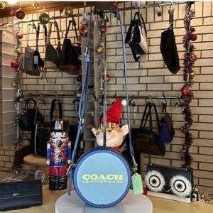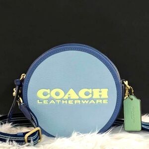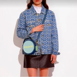 COACH KIA BLUE COLORBLOCK ROUND CIRCLE CANTEEN CROSSBODY BAG GUITAR STRAP