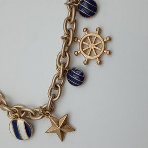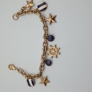 Charm Bracelet Nautical 7” Long Beachy Playful Gold Whimsical Kitschy