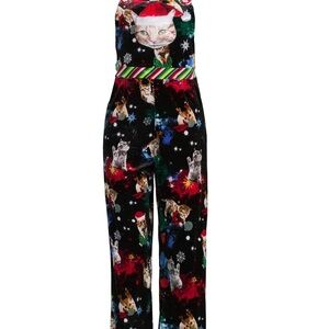Cutest and comfiest Christmas cat jumpsuit/romper/overalls worn one time with absolutely no signs of wear. Great for ugly sweater competitions. (I won first place in this!) Fits like an adult medium – It’s a junior size large 11/13.