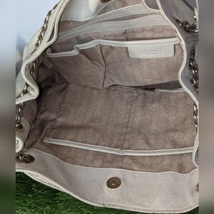Michael Kors Ivory Leather Purse Gold Metal Chain Shoulder Bag Jet Set Tote Crea