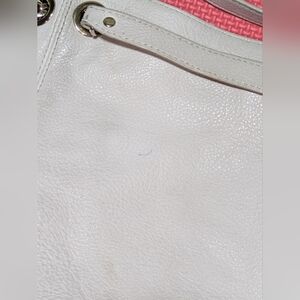 @mackdarlenef They are pin marks on the purse exterior. There is a small stain on the side. The exterior of the purse is in excellent condition. The last four pictures show the call outs.