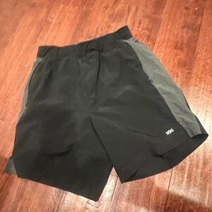 Great jacket….black banded bottom, sleeves, and collar. Thin, soft navy fabric shell!