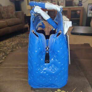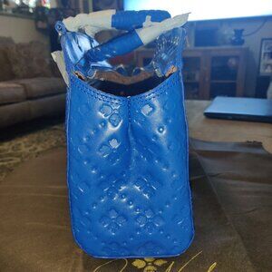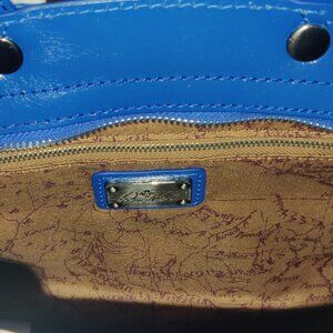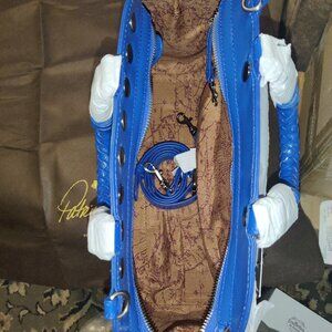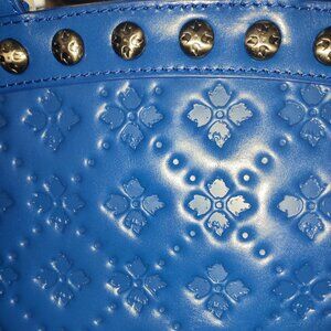 Part of Patricia Nash's limited & numbered Discovery Collection in the style called Minori in a RARE color of sky blue. With a nod to 1950s elegance, this modern Minori satchel offers undeniable sophistication with features like braided leather handles, stud accents, and textural embossing. It's that captivating leather bag that makes you feel like a million bucks.
