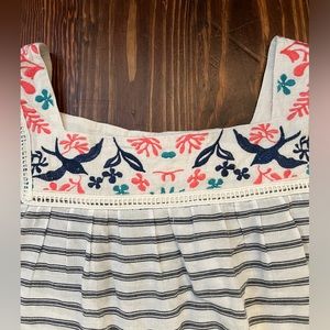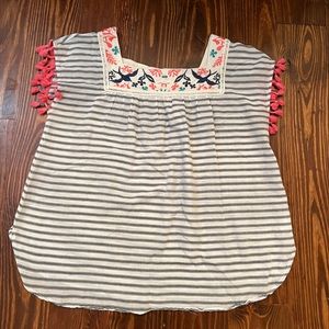 THML Striped Embroidery Top with Pink Tassel Trim on Sleeve