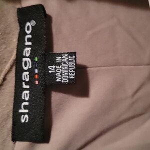 Top is made up of layers of spandex and polyester. Bottom layers form a peplum. In center of back there is a a polyester square leading into the peplum bottom. Long back zipper. Sleeveless.