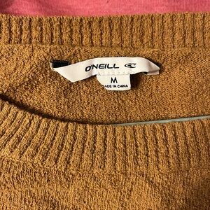 Tan/brown. O’Neill cropped sweater. Lightly worn. Wide neck