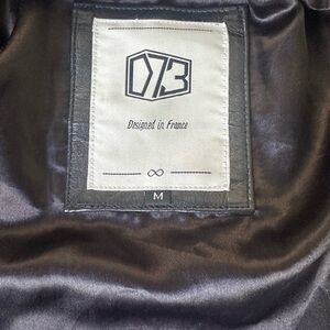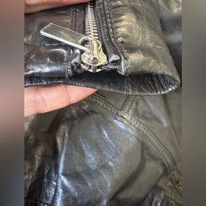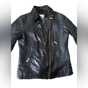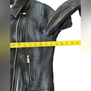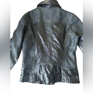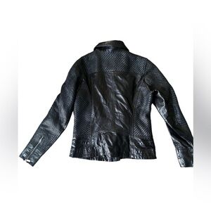 D73 Black Leather Biker Jacket Woven Leather Women’s Size M