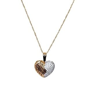 This classic split heart necklace set is a timeless accessory that makes a thoughtful gift for that special someone in your life. Crafted with a traditional design of delicate lines and a luster finish, this unique piece of jewelry is sure to bring the wearer style and sophistication.