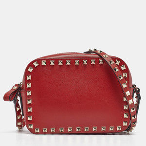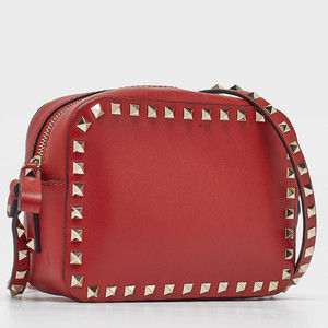 VALENTINO Red Leather Studded Camera Crossbody Bag