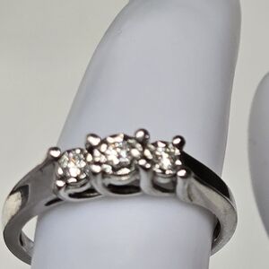 DIAMOND 3 stones ,Sterling Silver Ring