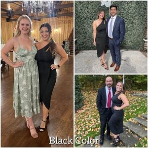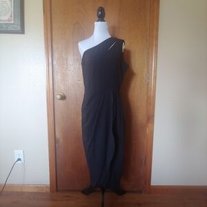 NWT Prettygarden Black One Shoulder Ruched Cocktail Formal Midi Dress. Below / at Knee Length. Wrap Bottom. Side Zipper. Empire Waist.