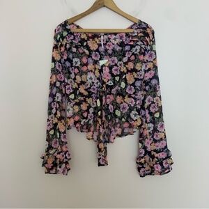 NWT New Free People Floral Cropped Ruffle Maybel Tie-Front Blouse Top Size XS