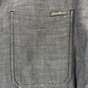 Eddie Bauer classic fit long sleeve button up shacket with plaid lining size TXL jean like putter with soft plaid lining (not flannel) light shacket/shirt jacket.