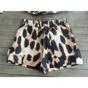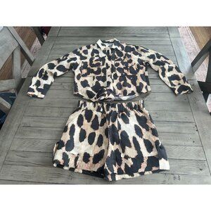 GANNI Silk Linen Leopard Print Shirt + Matching Shorts SET Size 32 XS