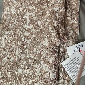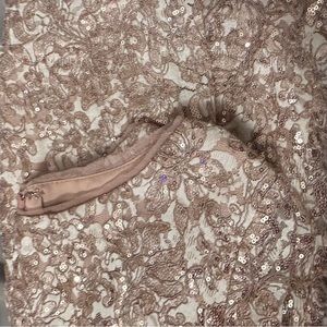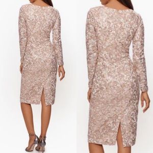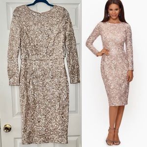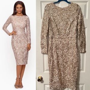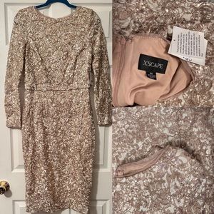 XSCAPE Midi shimmer Lace Long Sleeve cocktail prom wedding Dress Size 12