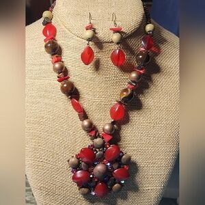 NWT Chocolate Covered Strawberries Necklace/Earrings Set