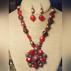 This NWT Chocolate Covered Strawberries Necklace/Earrings Set is a statement when you walk in the room. It screams confidence and elegance. Simply gorgeous. Bridgerton inspired.