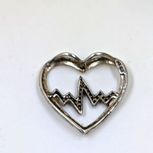 Heartbeat 925 Sterling Silver Signed and White Sapphire Vintage Pendant